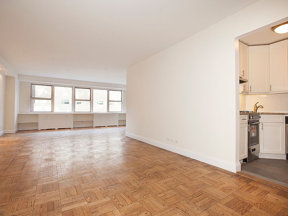 Huge alcove studio apartment with tons of light on high floor in luxury condominium with live in super and 24/7 superb and friendly concierge staff. There is a separate fully equipped kitchen and all white subway tiled bathroom. No pets please for renters in this pet friendly building - only owners can have pets!