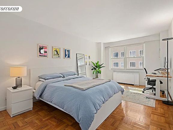 Warren House is a postwar condominium with amenities including a gorgeous landscaped roof deck with sweeping skyline views, full-time doorman, resident manager, central laundry and parking garage. Central to crosstown bus, major subway lines, Fairway & Trader Joe's. Some photos have been virtually staged.