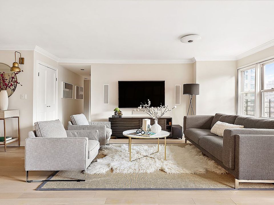 Welcome to apartment 12J at 155 East 38th Street. A stylish and renovated three-bedroom and three-bath condominium with a home office and terrace in the heart of the historic section of Murray Hill. This corner residence features an expansive living room with options for multiple seating arrangements and a wall of sunny southern and western windows providing beautiful light all day long.