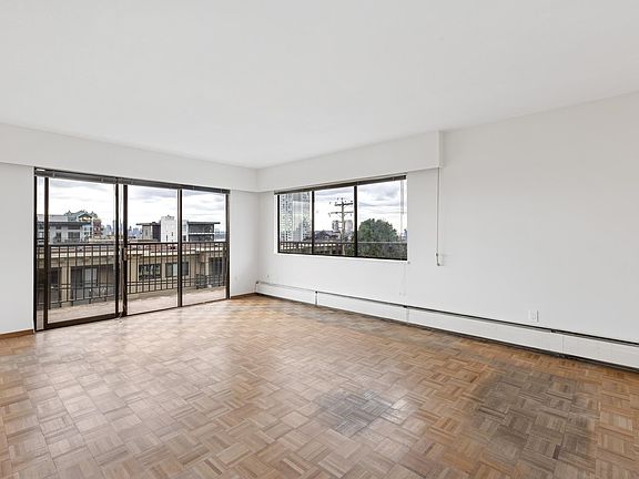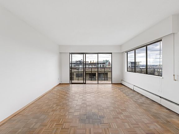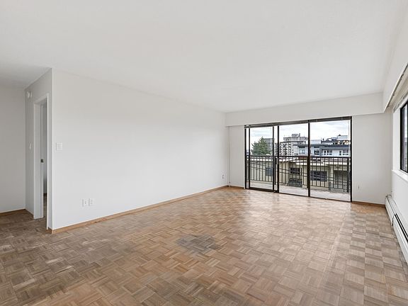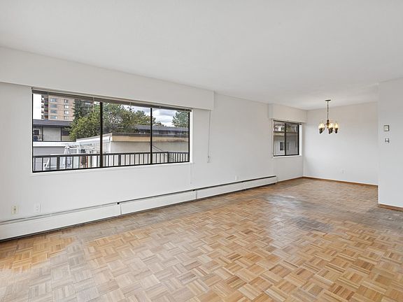 Bright 2-bedroom Winchester Estates Co-Op on the quiet southwest corner of the building, offering excellent value and light-filled living. The traditional, partially open layout features a generous living room with sliders to a wrap-around balcony and plenty of windows with partial city views. The dining area adjoins a galley kitchen with stainless steel appliances. The primary bedroom accommodates a king bed, while the second bedroom is versatile for guests or an office. Includes a 4-piece bath, original parquet floors, and fresh paint. Winchester Estates is an adult-oriented co-op with new roof (2025), and fees include heat, hot water, and basic cable. Steps to Lonsdale Quay, Shipyards, cafés, and SeaBus. Co-op requires 35% down and board approval.
