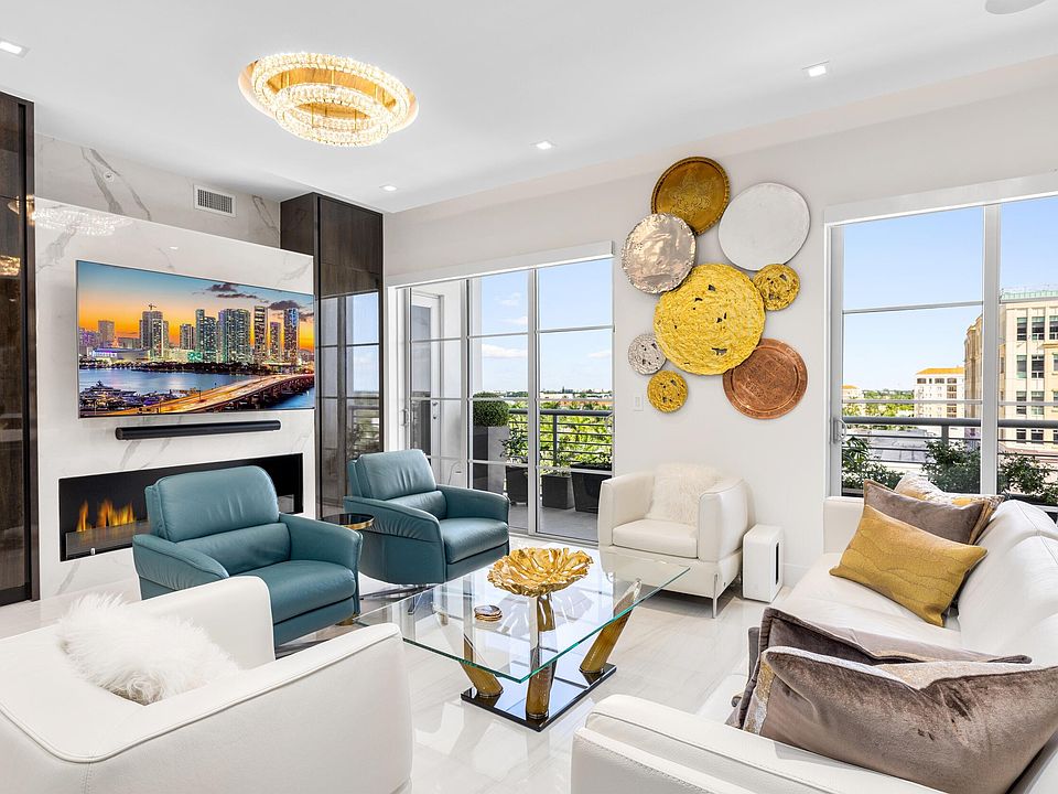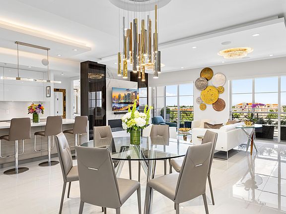 Welcome to the epitome of opulent living in the heart of vibrant downtown Boca Raton. This exquisite residence, completed in the summer of 2020, is a testament to the art of urban elegance. As you enter the residence, a sense of space and grandeur envelops you. With three spacious bedrooms and three meticulously designed bathrooms, this residence offers a sanctuary of comfort and privacy. The open-concept great room embodies an exquisite blend of sophistication and functionality, graced by generously sized porcelain tile flooring that seamlessly complements the lofty 10-foot ceilings. Custom-designed built-in wall units and a curated curio cabinet, coupled with the subtle elegance of Lutron mood lighting and distinct area-defining drop ceilings, unite modern design principles with a welcoming and comfortable living space. A state-of-the-art sound system and recessed ceiling speakers throughout further compliment the experience of this well appointed residence.