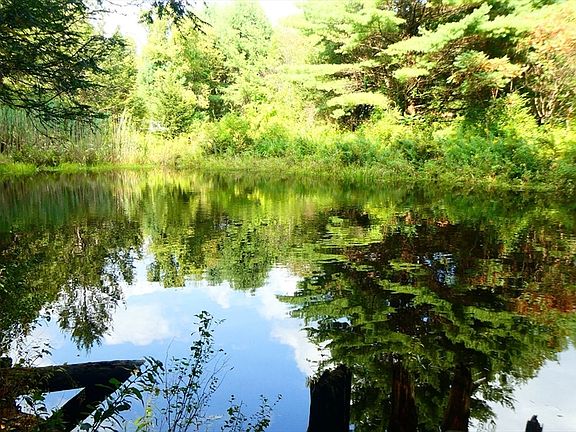This is a beautiful well built camp that overlooks a lovely, clear, stream fed pond. Several acres of open fields with the Westfield River across the road. Good southern exposure. Pleasant meadow views, your own Waterfall. Needs some TLC but it is an idyllic location just around the corner from Glendale Falls State Park. The cottage is accessed by a small foot bridge next to a babbling waterfall and path. There is a rough driveway into a parking area not seen from the road. Most unique..