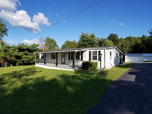 Super private yet close to everything. This cozy updated double wide on permanent foundation offers 3 bedrooms and 1.5 bathrooms. Living area, kitchen, & dining with large covered front porch and an enclosed back porch. Sitting on a private, treed 1.25 acre lot it comes with 3 out buildings with electricity and a carport with concrete drive. Cute place, ready to move in.