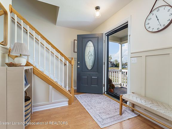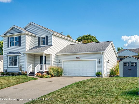 Clean, attractive, and gently used two story home attractively situated on a spacious lot. The current owners of this home have good taste and a strong pride in ownership. Visitors receive a warm welcome into the foyer which then overlooks a large, cozy living room with a fireplace. The open floor plan leads into the eating area and a newly updated kitchen with a subway backsplash and stainless steel appliances. A half bath completes the main level. Going upstairs, there is a generous primary bedroom with en suite. Two additional bedrooms, a second full bath and a laundry room greet you on the second floor. The basement is finished with a family room that the current owners use for multiple purposes. It is a great place to spread out and play; they have an exercise space, there is a big egress window for a possible 4th bedroom and a finished half bath is also on the lower level. The backyard has a nice deck, a fenced in yard. It is a garden lovers oasis, of raised beds for flowers, vegetables and more. The backyard has an 18' above ground swimming pool that the sellers wish to leave, a sandbox and a playset. The 8 x 10 shed stays. The location is outstanding. Lake Alliance Park is nearby, you can walk to it. The Potterville City Park is close by. The house is a quick drive to I-69 and a short drive to West Lansing. The subdivision is a community of great people. Look at this home as a real opportunity to enjoy life during your free time. Take a tour and enjoy the possibilities.