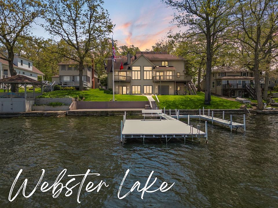 Experience the pinnacle of lakeside luxury living on the shoreline of Webster Lake known as Yellow Banks. This Webster Lake Property offers an unparalleled blend of elegance and recreational paradise. Boasting five bedrooms and 4 1/2 baths spread across nearly 5500 square feet of living space, every corner of this Lake home calls to you to relax and enjoy every moment. Step inside to discover a relaxing retreat just waiting for summertime fun. Create memories that will last a lifetime at this location. Vacation Destination or Year Round Residence, this spacious home has what you have been looking for. This home has so much to offer in its contemporary design that boasts lake views from the great room, kitchen and primary suite, not to mention the finished lower level that provides convenience of an additional cooking area, wet bar with ice maker and even projector and screen for movie night when the weather keeps you from being on the water! Outside, a sprawling 95 feet of lake frontage beckons, complete with its own private dock, providing endless opportunities for lake life the way you want it! From skiing and surfing to floating and fishing, Webster Lake offers an array of recreational activities for outdoor enthusiasts of all ages. There is even a Generac Generator that remains with this property for seemless enjoyment no matter the weather! Escape the ordinary and indulge in the ultimate lakefront lifestyle at 155 EMS W30 Lane. Priced at $1.19 million, this exquisite property represents a rare opportunity to own a piece of lakeside paradise in North Webster.