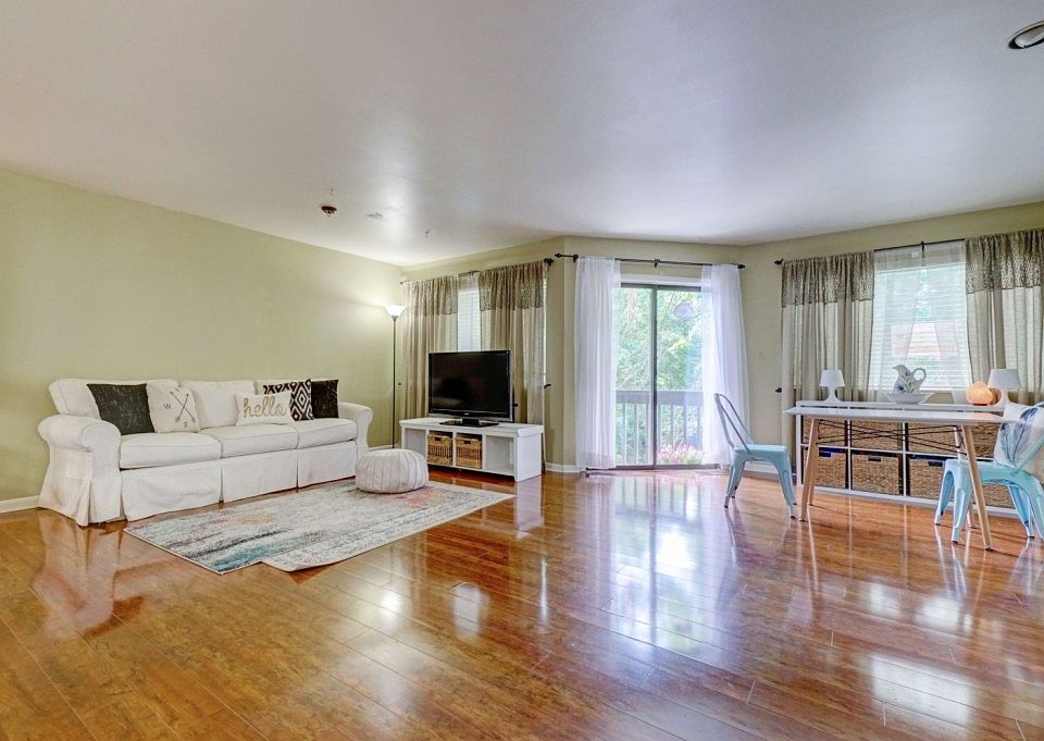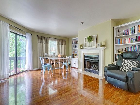 This spacious 1 bedroom, 1 bath condo is ideally situated in Building 8 of the Timber Valley Condo Complex. Building 8 is one of the best handicap accessible buildings with ramp entrances from either side. This beautiful condo has a really nice open and airy floor plan with all nicely sized rooms. As soon as you walk in, you are greeted with a large entertaining area which includes the living room, dining room, and kitchen. There are hardwood floors throughout, wood burning fireplace, terrace off of the living room, and a washer/dryer in the unit. The bathroom has been nicely updated and the bedroom is spacious in size. There is a 1 car attached garage and additional parking outside. The building is pet friendly and has a community pool.