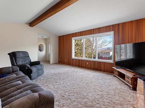 On a quiet street in Farviews, 155 Fairway Drive is a nice, well-maintained, 3 bedroom, 3 bath home alongside Highlands Golf Course with mountain views. Upon entering the home, you find a bright open living room, with vaulted ceilings, large windows, and a floor to ceiling fireplace created with hand-picked Travertine rock. From the living room you enter the kitchen and large dining/entertaining room with windows overlooking the golf course. Off the dining room, there is a back door that leads to a large wraparound deck made with composite materials. The laundry is located conveniently on the main level in the hall leading to the three bedrooms. The main level bathroom has natural light through a tubular skylight. The primary bedroom has a ¾ bathroom attached. Downstairs is a partially finished basement with a large open family room, bathroom with shower, a bonus room, and a large shop. The lower level also has a convenient separate entrance. The home has gas forced heat and central A/C. Off the kitchen there is a large attached double garage with two utility doors to the back/side yards. A new roof was installed at the end of 2023. For additional details call Jon Freeland at 406-360-8234 or your real estate professional.