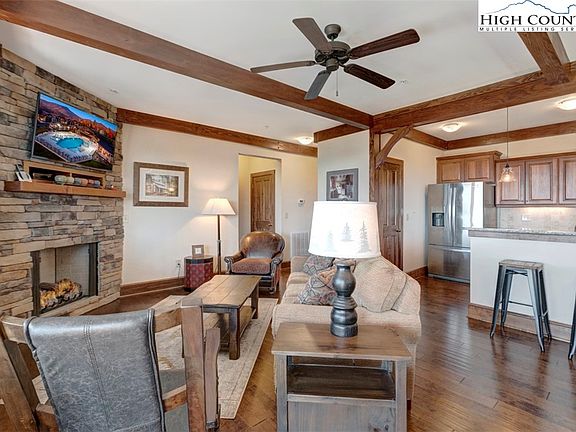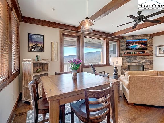 Immaculate 2BR|2BA Chalakee condo with luxury finishes and panoramic views of Grandfather Mountain! Offered furnished, this mountain escape is ready for you to experience life at Echota. Finishes include hardwood floors throughout the main living areas, new carpet in the bedrooms, stacked stone gas fireplace with remote and custom timberframe accents. The elegant kitchen features wormy cherry cabinetry, granite countertops, tile backsplash, stainless steel appliances and a convenient breakfast bar. The open living and dining area are surrounded by windows allowing for mountain views from every angle and has access to the spacious covered deck with built-in gas grill with granite surround. Take in the views from the serene primary suite with rustic furniture and double closets along with an adjoining primary bathroom with double vanity, linen closet and large tile shower. The bright guest bedroom has an adjacent full bathroom with tub/shower combo and plenty of storage. Additional features include 9ft’ ceilings throughout, rustic timberframe beams, custom blinds and a storage closet at the front entry. Owners have access to the new amenity center at The Summit at Echota which includes a spectacular outdoor pool and deck area, fitness facility and skybridge. Enjoy mountain life in this maintenance free community!