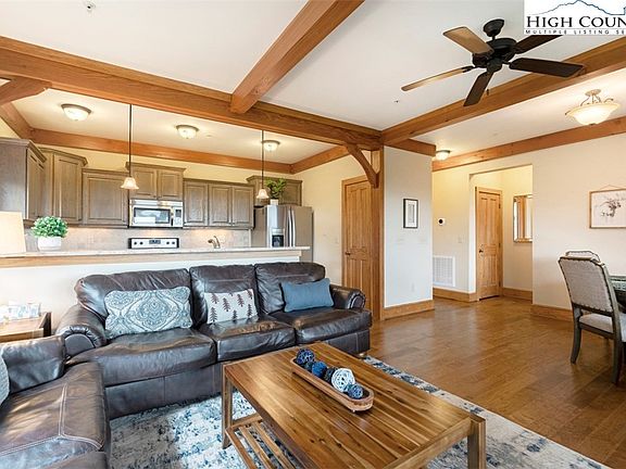 Chalakee 2BR|2BA condo with Grandfather Mountain views! Offered furnished, this well-maintained condo is ready for you to enjoy. Features include hardwood floors, stacked stone gas fireplace, Phantom screen doors and timberframe accents throughout. The high-end kitchen has granite countertops, stainless steel appliances and custom pewter oak cabinetry. The living and dining area open to the spacious covered deck with built-in gas grill and expansive mountain views. The primary bedroom has double closets, plenty of windows to take in the view and an adjoining primary bath with tile shower and double vanity. The spacious guest bedroom has an adjacent full bathroom with tub/shower. There’s ample storage throughout including a storage closet at the exterior front entry. Additional features are 9 ft ceilings throughout, Nest thermostat and keyless entry. Owners have access to the amenity center at The Summit at Echota which includes a spectacular outdoor pool and deck area, fitness facility and skybridge. Enjoy mountain life in this maintenance free community!