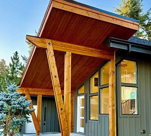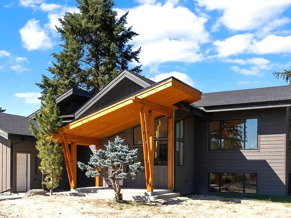 - Front Vaulted Roof Covered Porch w/ Metal Shed Roof & Natural Rough Sawn