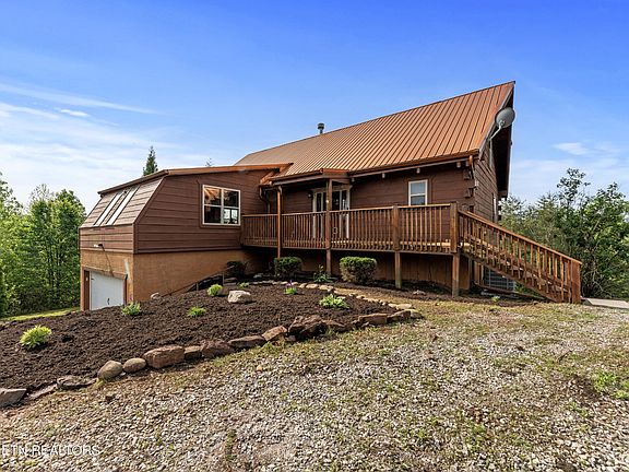 Come Home and relax to your wood cabin style custom home with complimentary modern touches and charm. . Sitting on 5+ acres in Vonore overlooking mountain and lake views. As you enter a large welcoming foyer that leads into the heart of the home you will be awed by the warmth and ease of the layout. Open Kitchen floor plan having higher end stainless steel appliances connecting to a Great Room with 25' soaring high beamed ceilings with a wrap-around 2-sided floor to ceiling seashell encased stone fireplace, this is unique. Also included is the Caribbean wide wood board flooring plus floor to ceiling windows revealing the beautiful mountain and lake views. Enter the 20X20 Sunroom with custom arched beams and 18 inch imported tile (also in kitchen and foyer). Main level Master Suite w/dbl closets & walk-in shower. Upper level includes 2nd Master Suite w/walk-in shower & balcony, large loft/home office ( with high-speed internet and cell service availability) w/built ins. Lower level has an office or make into a bedroom, full bathroom with walk in shower, Home Gym, Workshop, w/ample storage and room to grow. All the above with wraparound porches/decks to sit, enjoy and relax. Also property is convenient to marinas, fishing, boating, shopping, airport and medical facilities just minutes away. New HVAC (2023) Kitchen Range Appliance (2023), (Billiard Table Conveys ($3500 has receipt)). Shared Driveway with Maintenance Agreement. Has Restrictions. Available upon Request. Please see property disclosures and documents. Buyer is responsible to understand during the due diligence period.