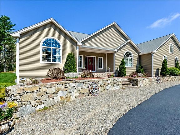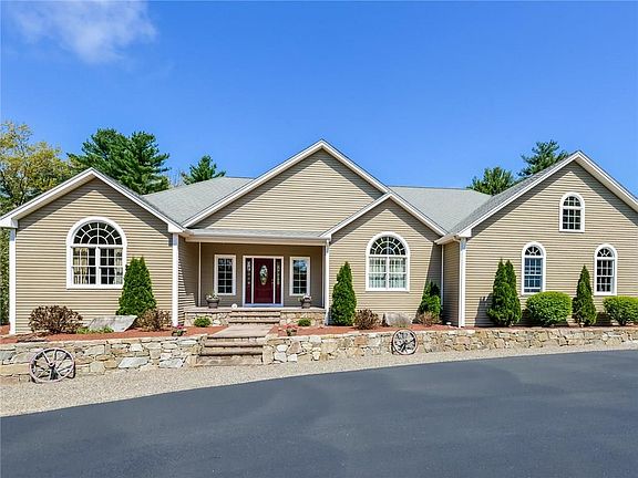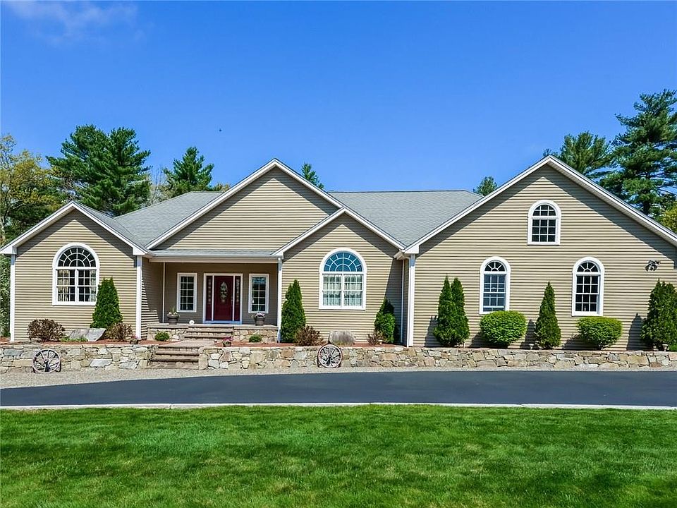 One level living and an IN LAW APARTMENT! Located minutes from the N. Smithfield line, is this stunning custom built Ranch set on a private 2.93 acre meticulously landscaped lot. Once inside, marvel at the open foyer and gleaming hardwood flooring, extensive custom moulding, raised panel wainscoting, and curved archways. The home's living room with gas fireplace and built-in book shelves open to the lovely 4 season sunroom with plenty of windows and a door leading to the outdoor patio. The heart of the home, the kitchen, is truly a wonderful place to cook and entertain. Stainless steel appliances, gleaming granite counters and plenty of cabinetry. The dining area with bow window is the perfect place for informal dining. Retreat to the master suite that features plush carpets, a walk in closet a tiled bath with granite vanity, walk-in shower and jetted tub. There are two additional spacious bedrooms with carpeting and ample closet space, and a full tiled bath. Off the kitchen is the mud room,half bath and laundry. Heading to the lower level of this pristine home is the in-law apt. This spacious apt. has a full kitchen, full bath, living room and bedroom. This wonderful additional space has its own private entrance and driveway. The home has a three car attached garage, central air conditioning, and oil heat. When you are at the property a sense of privacy and beauty surrounds you, but you are a minutes from highway access to Providence or Boston. Truly a must see!