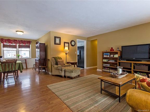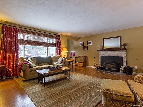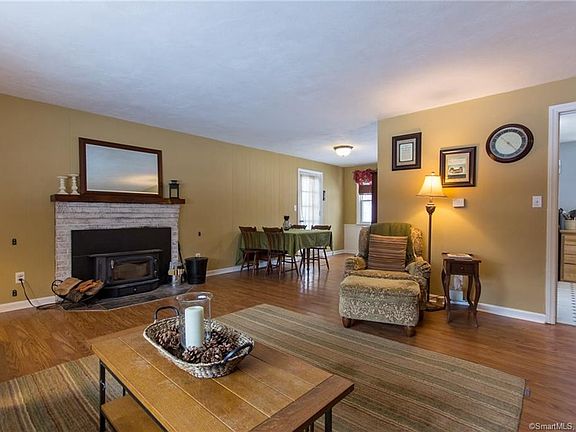 Welcoming 3 Bedroom Open Floor Plan Ranch with garage on a 0.33 acre corner lot in neighborhood setting! Large Living Room where Fireplace/Wood Stove Insert keeps the house cozy on cold days! Cheerful dining area with bead board details. Radiant oil heat. Easy maintenance laminate wood floors and new vinyl flooring in the kitchen. This great backyard is accessed from covered back porch and garage, and is mostly fenced. There is also a shed, a fire pit, and a garden area! Covered porch is a great spot for the BBQ grill. Pull-down stairs access attics in both the house and garage for storage, and garage has utility sink with hot and cold running water. Subject to Seller finding suitable housing.
