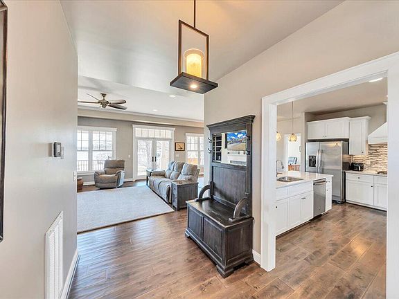 Waterfront, 3BR, 2.5BA, Energy Star Craftsman @ Smith Mountain Lake. Entry Level Living with Open Floor Plan & Peaceful Long Water Views of a wide cove off the main body of the lake! Perfectly flat point lot, w/ 224 ft of waterfrontage. Deeded boat lift just steps from the home. Covered Porch overlooking the lake, Spacious Great Room w/ gas fireplace, tray ceilings & Remote Control window shades, Large Dining Area, Gorgeous Kitchen w-granite & stainless appliances. Wood flooring throughout. Awesome Primary Bedroom suite w/ tray ceiling, Bath w/large tile shower, soaker tub and walk-in closet. Home entertainment system with surround sound, Custom plantation shutters. Short Term Rentable.