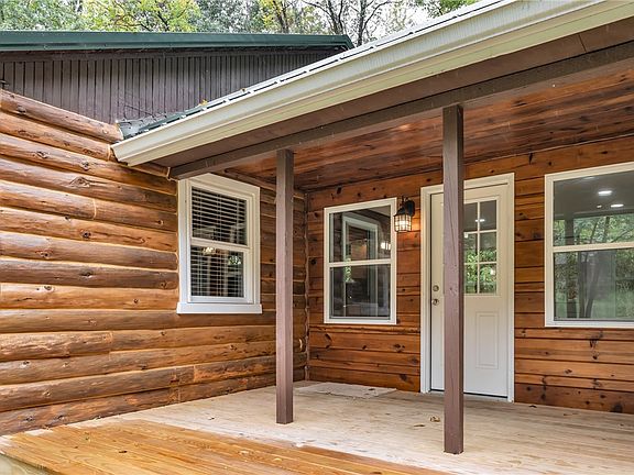 Stone fireplaceTwo wood-burning fireplacesWooded acresSerene groundsSolid log constructionBright clean basementCovered front porch