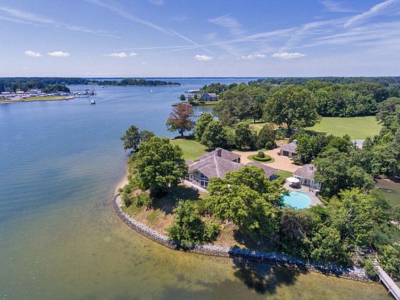 This is your own private resort on CARTERS CREEK situated on a POINT OF LAND allowing BEST views from EVERY ROOM all the way out to the River! Beautiful grounds, landscaping, private pier with 8'MLW-BOATLIFT & Floating Dock, detached garage, pool house, pool & main residence. The main residence boosts high ceilings, hardwood floors, large/open rooms...this house was meant for coastal entertainment and enjoyment! Living Room area with soaring windows, wet bar having ice maker & floor to ceiling stone fireplace with gas insert...opens into GREAT ROOM/DINING AREA all with deck access & sliding glass doors as the walls plus access to the grand Screen Porch. Full equipped Kitchen with Wolf 5 Burner gas stove stop, subzero refrigerator, double ovens, dishwasher, desk, bar area & ample storage. Fantastic Master Suite with his & her vanity & closets in Master bath. TWO ensuite Guest Rooms, Den & other bathroom. Outside you have 1700 sq.ft. of Decking with POOL on side of Home (Full Bath Attached to side of Home for Pool easy Bathroom Access). Pool-40'X 24' Oval Gunite Pool with Slate Decking replaced 2009 & NEW Pump & Cover in 2011. POOL HOUSE/Guest House with Great Room, Kitchenette, Full Bath & Bedroom overlooking waterfront & pool. This is Elegant & Coastal Living on one of the FINEST Creeks! Enjoy BEAUTIFUL Boat Traffic from the TIDES INN & Rappahannock Yacht Club Across the creek! Can't get much better than this waterfront home!!