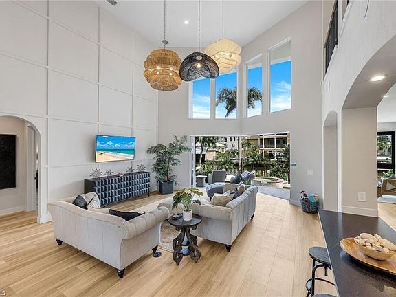 Boating 10 Minutes to the Gulf & Just 1 Mile from Wiggins Pass Beach! Located in the prestigious Conners neighborhood of Vanderbilt Beach, this completely reimagined 4-bedroom + flex room, 3-bath residence offers the ultimate Naples waterfront lifestyle. With over 3,300 sq. ft. of beautifully updated living space, the home showcases soaring ceilings, floor-to-ceiling glass, and an open, light-filled floor plan perfect for entertaining. The main-level owner’s suite includes a private lanai with sparkling water views and a spa-inspired bath with Jacuzzi tub and walk-in shower. The 2023 remodeled kitchen with a leathered bar flows seamlessly into the living and dining areas, while a Sonos entertainment system, stylish bar, and private office (or 5th bedroom) enhance the lifestyle. Upstairs, two spacious bedrooms and a third with stunning views create an inviting retreat for family and guests. Outdoors, enjoy the screened lanai with heated pool and spa, a chic garden terrace, and multiple lounge areas overlooking the water. The expansive dock with boat and jet ski lifts provides effortless access to the Gulf in just minutes—ideal for those who love boating and waterfront living. Close to the Ritz-Carlton and LaPlaya Beach & Golf Resort—where private beach club memberships are available—the location is unmatched for both luxury and convenience. Just minutes away, Mercato offers upscale dining, boutique shopping, Whole Foods, a cinema, golf resorts, and vibrant nightlife. Thoughtfully updated and truly move-in ready, this Vanderbilt Beach gem delivers the very best of Naples coastal living.
