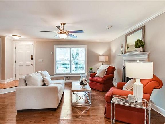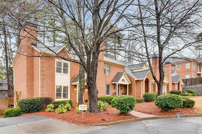 Rare opportunity - well maintained move-in ready end unit. Great room w/ hardwood floors, fireplace & wet bar. Dining area walks out to private deck. Kitchen has granite counters, refrigerator, electric range & dishwasher. Breakfast room overlooks woods & walks out to deck. Two large upper bedrooms w/ private bathrooms & walk-in closets. Convenient hall laundry closet w/ washer & dryer. Drive under 2 car garage & storage on lower level. Convenient to schools, shopping, restaurants, movie theatre, public transportation & GA400. This one will not last long!