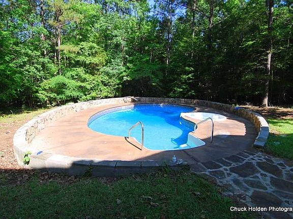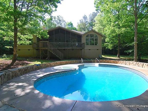 Wooded Oasis with Privacy Galore! This beautifully appointed home is nestled on acreage that allows room to roam. Gourmet kitchen overlooks the living room with a beautiful stone fireplace, hardwoods, granite and too many extras to mention. Peaceful porch that overlooks pool. There is also a detached 1800 sq foot garage/workshop with a heated and cooled workout room!