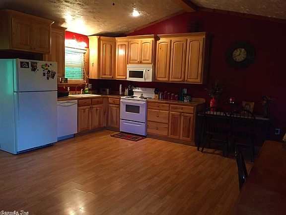 Move in ready 1BR/1BA home on 1.5 acres perfect for a first time homebuyer! The kitchen is very large with tall vaulted ceilings. Living room features rustic hardwood on the walls and a tin metal ceiling. The large bedroom has a custom sliding barn door and has a large walk in closet. Fish from your back covered deck that is just feet from the stocked pond! There is a detached lofted storage building also included on the property. Call to take a look!