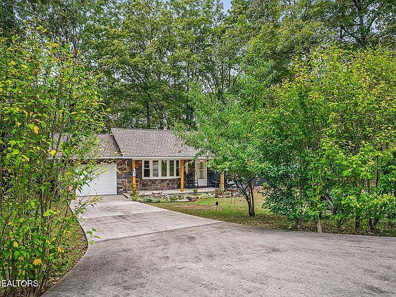 Enjoy privacy and beauty the moment you arrive—this home is tucked behind blooming Rose of Sharon bushes and surrounded by meticulously maintained landscaping, complete with a tranquil waterfall feature near the front porch. The covered porch is rocking-chair ready with a ceiling fan, perfect for relaxing evenings. The exterior shines with brand-new dark blue vinyl siding accented by stone veneer, new windows, new deck in 2023, newer roof and new gutter guards.