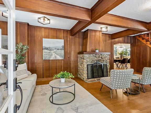 Situated towards the end of Larkspur St, this charming home is an entertainer's delight, featuring a formal dining room and a spacious deck that blends indoor and outdoor living. The inviting stone fireplace evokes the cozy ambiance of a mountain cabin, perfect for relaxing with a cup of tea on a winter's day. The warmth of wood floors and beautiful wood paneling throughout the home enhances the cabin feel.