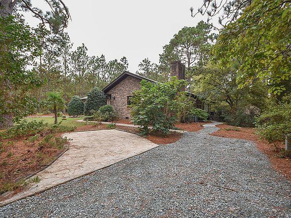 A unique setting on .64 acres with fenced back yard. Arched transitions lead you from living to dining and into a generous Carolina Room with french doors. Propane fireplace, updated appliances, Corian, kitchen island and lots of versatile rooms. Enjoy a large laundry and office space and Finished Basement with 3 carpeted rooms plus storage! This small community of 4 properties was developed in the mid 1980's. The community shares a well that sits behind the fence off property and the other 3 properties have easements to the well pipes that run across the property. There is a road and well maintenance agreement as the cost for these are split 4 ways. Out building was used as a kennel. Back yard is fenced. Cute coop for chickens in the back! Convenient yet tucked away. Metal Roof approx 7 years. HVAC approx. 2 years. Septic recently pumped. The Palm Tree and Fig Tree in the front of the house do not convey & will be removed prior to closing.