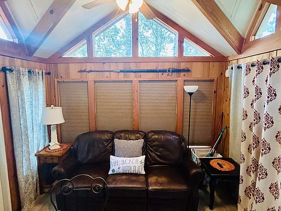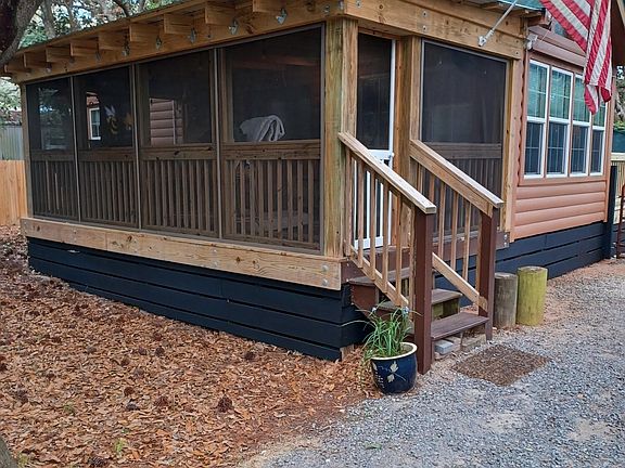 Discover your cozy retreat in this delightful 551 sq ft tiny home nestled in the serene woods of Santa Rosa Beach. Perfect as a personal getaway or a unique investment opportunity.Features:- 1 Bedroom: Comfortable and inviting space.- Loft: Ideal for extra sleeping space or storage.- Full Bathroom: Modern and well-appointed.- Living Room: Bright, welcoming, with vaulted ceilings.- Kitchen: Efficient with ample storage.- Screened-In Porch: Enjoy the outdoors without the bugs.- Rustic Charm: Wood exterior and green metal roof blend with nature.Interior Highlights:- All-wood design with natural wood paneling.- Large windows for abundant natural light.- Ceiling fan for added comfort.Set on a wooded lot, this home offers privacy and a peaceful atmosphere.