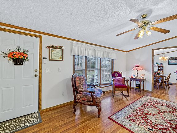 Spacious, tranquil, and private country living at its best! Set on over half an acre of level, usable land, perfect for gardening, cottage chicken farming, and plenty of room for pets to roam and play. Inside, this home features an open kitchen with a generous breakfast bar, an eat-in area with sliding doors leading to the tranquil backyard, and a separate formal dining room ideal for everyday living and entertaining. The cozy den is highlighted by a wall of windows that flood the space with natural light, along with a fireplace/wood-burning stove, creating a warm and welcoming gathering space for family and friends. The main living room features a charming bay window that beautifully frames the expansive, pastoral front yard. Relax on the covered front porch and take in mountain views and serene country scenery this is a must-see property that truly offers the best of both worlds.