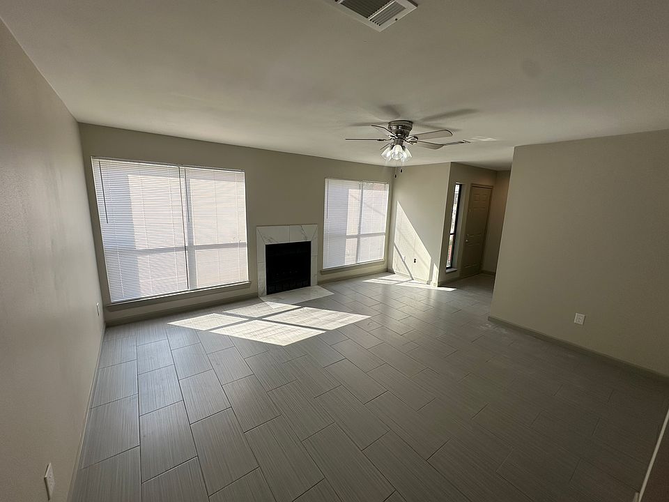 Large living room with a newly tiled fireplace perfect for relaxing or entertaining
