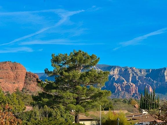 This home sits on a bluff right at the base of Thunder Mt. with amazing views! Andante Trailhead is just 1 block away for an easy getaway into Sedona's beautiful National Forest! Low maint. landscaping and a sunny covered porch invite you into this whimsical retreat. Kitchen has breakfast bar, new appliances and overlooks the living room with a peaked ceiling of tongue and groove pine wood and a cozy brick fireplace. A large and bright enclosed Arizona room will lead you to the private patio with flagstone paths and a relaxing jacuzzi for star gazing. Main home has 3 beds and 1.75 baths. Master has RR views, 2 closets, and walk in shower. Separate guest house has kitchenette, full bath, a large Trex deck and a portable sauna. Turn Key - Everything is included! See list of new items.