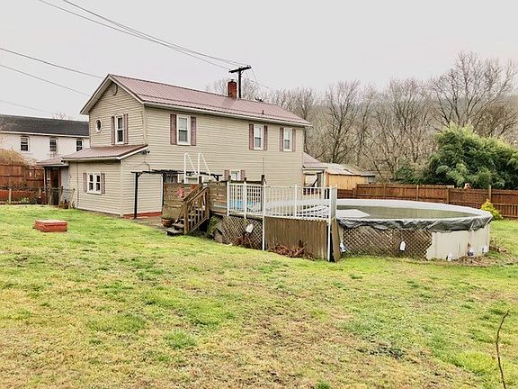 Charming rustic home on no-through street featuring large rooms, huge country kitchen and updated mechanicals including a brand new furnace plus windows and metal roof under 10 years, a 27' swimming pool with deck and large completely fenced yard for family fun, plus a 21x11 private screened-in porch and a large covered front porch. There's even a big man-cave/shed/work shop for hobbies and beautiful stamped concrete sidewalks around the home. The water is supplied by a spring and is pumped into the home, sellers report never having a water shortage and excellent water quality. The new windows and vinyl sided exterior make this a low maintenance home.