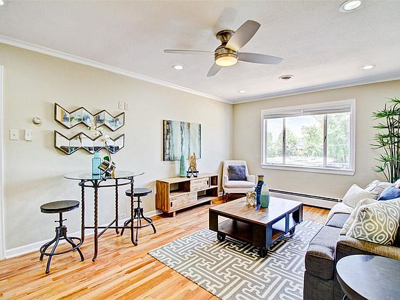 Perfect Location with a walk score of 90! Two Bedroom Condo in the heart of Cherry Creek North. Real hardwood floors throughout! Fresh new paint and new light fixtures and ceiling fans, Cherry wood cabinets, Stainless steel appliances, wine storage and wine cooler. Open floorplan concept with big windows. This is a two bedroom and one bathroom floorplan on the 2nd floor in the small boutique building. Secure entry with call box on a plush green walkable street. Shared laundry room on first floor also a storage locker included with property. Condo has a reserved covered carport space and open parking in neighborhood. Low maintenance property and easy to lock & leave. This home is perfect for a first time home buyer or as a second home when visiting Denver. Low HOA as compared to other condo properties in this zip code. This one will go fast!! Don't wait too long or it will be gone.....
