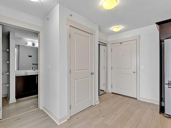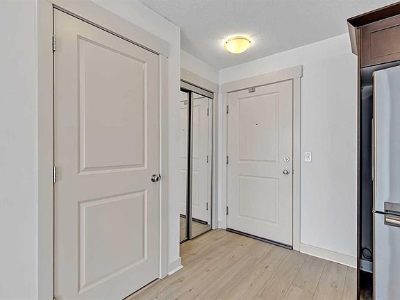 Welcome to SkyWest Condominiums! This immaculate, move-in-ready condo is tucked away in the highly sought-after community of Skyview Ranch, offering the perfect balance of style, comfort, and convenience. Step inside to an inviting open-concept layout bathed in natural light and enhanced by soaring 9-ft ceilings. Durable Luxury Vinyl Plank flooring flows seamlessly through the main living areas, while plush carpet in the spacious primary bedroom adds warmth and comfort. The showpiece kitchen is a true delight, featuring gleaming granite countertops, an undermount sink, ample cabinetry, and a premium stainless steel appliance package. An eat-up breakfast bar provides the ideal spot for quick meals or entertaining guests. Your east-facing balcony is perfect for morning coffee or summer BBQs, complete with a gas hookup. The primary bedroom easily fits a king-size bed and includes a generous walk-in closet. The 4-piece bathroom offers a stylish vessel sink and a relaxing soaker tub. Additional highlights include in-suite laundry, a titled underground parking stall with storage, and plenty of visitor parking. The beautifully landscaped SkyWest complex offers lush green spaces and is just minutes from Metis Trail, Stoney Trail, Calgary International Airport, shopping, and schools.