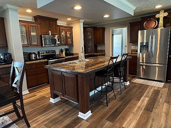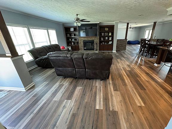 This well-maintained and recently updated 2014 Champion home features a large open floor plan with a wood burning fireplace, generously sized bedrooms, and a welcoming living area—perfect for family gatherings. Step outside and enjoy a covered patio, double carport, above-ground pool with attached deck, and detached storage—everything you need for entertaining, growing a family or everyday convenience.