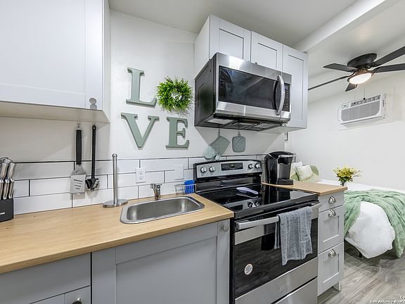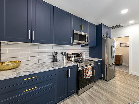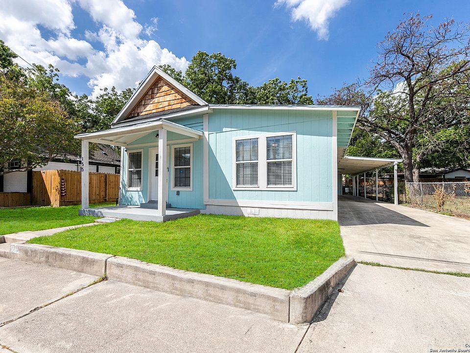 Discover the perfect blend of historic charm and modern luxury at 155 Oelkers, a 108-year-old gem in the heart of the vibrant Lone Star district. Meticulously rejuvenated by the award-winning Tripp Flip LLC, recognized by San Antonio Magazine in 2022, this property offers over 1200 sqft of space with three spacious bedrooms, two lavish bathrooms, and soaring 12-foot ceilings. The gourmet kitchen boasts marble countertops and state-of-the-art appliances, complemented by a chic coffee bar that doubles as a walk-in pantry. The sunlit primary suite features a custom closet and a spa-like bathroom with a standalone tub and rainfall shower. Additional highlights include a versatile casita with a bedroom, bathroom, and kitchenette, a unique 3-car carport, off-street parking for 5-6 vehicles, and a covered patio overlooking a lush backyard oasis. Located a stone's throw away from the bustling Southtown and King William, 155 Oelkers is a rare find, offering both lively entertainment and serene family streets. Don't miss this opportunity to own a piece of history with all the modern conveniences in San Antonio's rising hotspot. Your dream home awaits!