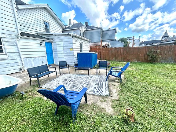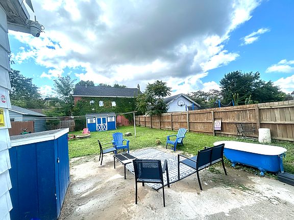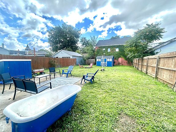 Step into the large enclosed backyard, offering privacy with tall fences and a concrete patio area ideal for lounging. A fire pit invites gatherings under the stars, making this outdoor space perfect for entertaining. Security is a priority with installed cameras and keyless entry codes.