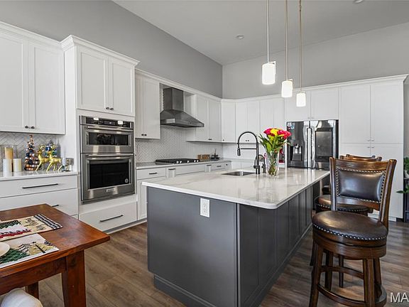 This beautifully designed 3-bedroom, 2-bath home offers modern luxury and effortless living. Soaring 12' ceilings in the kitchen, breakfast room, and great room create an airy, open feel. The white gourmet kitchen is a chef’s dream—featuring Quartz countertops, a large island with seating, gas range with stainless hood, wall micro-oven combo, and an instant hot water dispenser. The spacious primary suite boasts double sinks, a frameless no-curb shower, and a walk-in closet with custom organization. Enjoy luxury vinyl plank flooring and 5.25" baseboards throughout. Main floor laundry adds convenience, while the walk-out lower level includes rough-ins for a future full bath and wet bar. Step outside to a brand-new PVC deck with stairs and custom lighting—perfect for entertaining. All nestled on a peaceful cul-de-sac with a 2-car garage. This home is move-in ready and built for comfort and style! Showings start Saturday, November 22 - schedule your showing now!