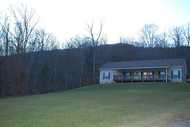 Beautiful home with wooded back yard & open front yard with 1.43 acres. Long range mountain views from the covered front porch. Open floor plan with two living spaces, including a den with wood burning stone fireplace that opens to the back deck. Den is open to dining and kitchen areas creating a wonderful flowing open space. Kitchen offers an island, lots of cabinet space and great natural light. Laundry room/mud room is off of the kitchen. The master suite offers a walk-in closet and spacious bath with double sinks, garden tub and a separate shower. 2 additional bedrooms and a full bath are on the opposite end of the house. RECENT UPGRADES include new electric HVAC with air in 2014, new carpet through-out, new vinyl flooring in the kitchen and guest bath, new fridge, dishwasher, and large basin stainless steel kitchen sink, new toilets, new blinds, freshly painted interior, beautifully cultivated lawn hydro-seeded in 2015 and an extended gravel parking area. Make this your next home today! (shared well cost is $60/year, and road maintenance fees are $50/year).