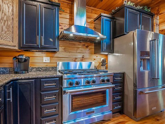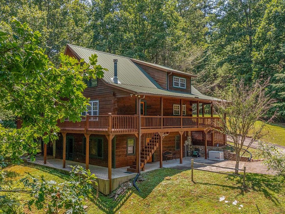 A stunning true log cabin with an all-wood interior in the prestigious gated Toccoa Bend community with deeded Toccoa River access and meticulously maintained 7 acres of community green spaces and a pavilion by the riverfront. This 4 BD, 3 BA cabin has been lovingly cared for and offers an upgraded chef's kitchen, soft close luxury cabinetry, gas range, large granite island, an open great room with beamed cathedral ceilings, a wall of windows, all new exterior deck boards, huge wrap-around porches, deck, and patios for gathering & entertaining. The cabin comes fully furnished, with a full house generator, a 2-car detached garage, a built-in gas grill on screened porch, and situated on a wooded 1.66-acre lot with seasonal views and potential for mountain views with trimming or vista pruning. The community is adjacent to Chattahoochee Nat 'l Forest, hiking trails, fly fishing, canoeing, kayaking, fish hatchery, pristine mountain vistas, and all things outdoors.