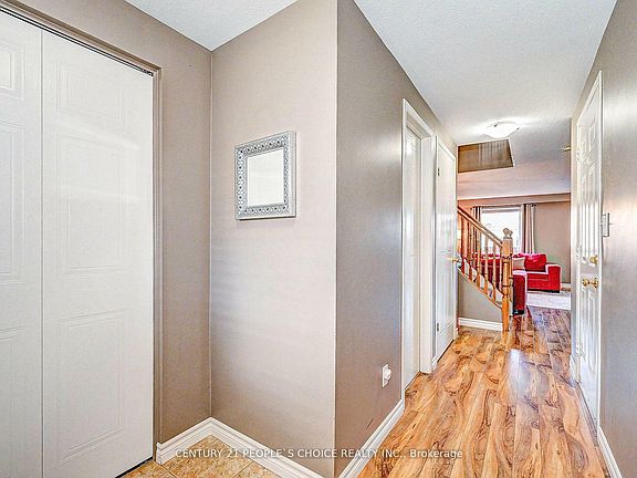 Welcome to a beautiful and clean 3 bedroom townhouse boasts over 1529 sqft of fully finished living space and is situated in the sought after Laurentian Forest neighbourhood. Step inside to an inviting open concept main floor with garage access, featuring a 2 pc bath, dining area, Kitchen with ample countertop space. Sliders from the dinette area lead you to the large deck and fenced private yard backing onto walking trails. Oak railed staircase leads you to the 2nd floor showcases a large master bedroom with deep closets and 2 large sun drenched windows, two other bedrooms and full4 pc bathroom. Basement has a family room and a bedroom with 3 pc bathroom and a kitchenette. This is a great opportunity for the first time buyers looking for a freehold townhome. Be sure not to miss this home with a single car garage and private backyard fully fenced close to shopping, walking trails, schools and much more.