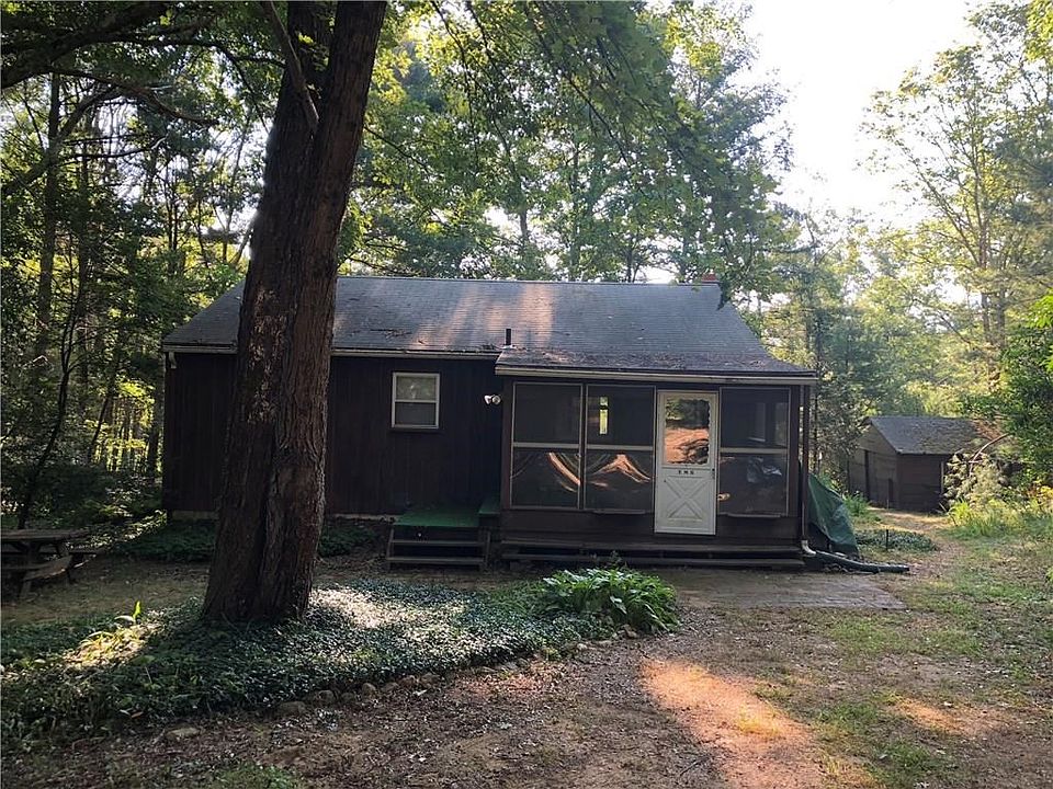 IF YOU WOULD LIKE A LIFE OF QUIET, PEACEFUL LIVING WIH VIEWS OF THE POND, THIS HOUSE IS FOR YOU. ACRES OF TREES AND LAND TO BE ADMIRED FROM THE BACK AND FRONT PORCHES. FIREPLACED LIVING ROOM WITH CEILING FAN. EAT IN KITCHEN WITH STOVE AND REFRIGERATOR. 2 BEDROOMS WITH DOUBLE CLOSETS. THE BASEMENT IS GREAT FOR STORAGE OR TO DIVIDE AS YOU CHOSE. REDO THIS HOME TO MAKE IT A DIAMOND IN THE ROUGH.