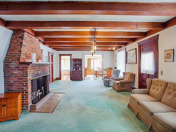 Idyllic setting in the Topsfield countryside, yet convenient to all modern amenities, this spacious Bungalow is adorned with stone columns and detailing. A desirable open floor plan with picture windows overlooking the landscape, and natural light throughout. Numerous outbuildings may be attractive to enthusiasts of all kinds, and include Greenhouse, two car garage, six car garage bay, (former) pool cabana, garden shed and well and pump house. There are many historic features within, including the home's central exposed brick fireplace, built in cabinetry throughout, beamed and cathedral ceilings, and a screened in porch ideal for summer enjoyment. This home has been in the same family for nearly 5 decades and is seeking the discriminating buyer for revitalization of this grand estate-like setting. Modern features include a first floor master suite with wall of closets & en suite bath with double sinks. Sellers shall provide an approved septic design (buyer to assume responsibility).