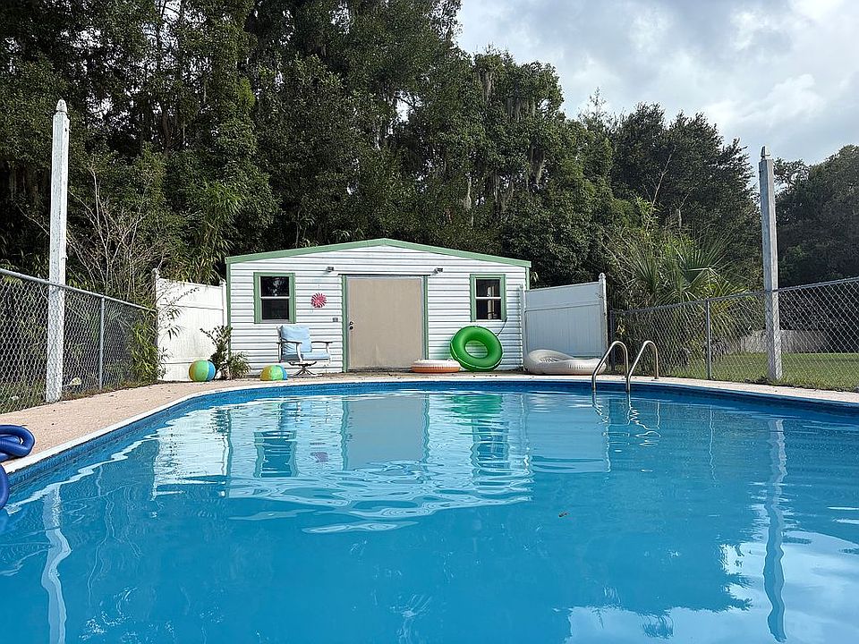 Happy brick pool home on 4.1+/- acres! This three bedroom, one and a half bath home has had many recent improvements and is ready for a new owner. Features include a relaxing 8 x 32 screened front porch, living room with gas fireplace, remodeled kitchen, spacious master bedroom with en suite bath, updated hall bath, and a huge laundry/dining/ family room The lovely grounds are mostly cleared with some nice shade trees remaining and the property is fully fenced. Cool off in the in-ground pool , use the pool house for a man cave or have a bar-b-que on the pool deck. Bbq is natural gas line There is plenty of room for all the toys, including 2 RV ports, an attached two car garage, a nice pool and a workshop. A chicken coop with chickens The property is zoned agricultural and waiting for your garden or animals. Beautiful sunset and friendly neighbors Very peaceful happy home. New appliances , new central air new septic. Home very well taken care of. Close to drive on beaches and St Augustine. Small country town yet close to everything.