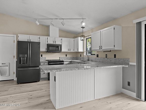 Ready to call home! This property has RV parking, a shed/workshop, a green house, attached garage, no HOA, and is conveniently located off of Pyramid Highway. Step inside and feel right at home. Newly installed drip line system will take care of all of the front and back yard greenery. Updated in 2019 with new luxury vinyl flooring, repainted and refinished cabinets, new granite counter tops, updated bathroom vanity and light fixtures. This home includes beautiful patio space, and plenty of room for all of your tools, toys, and pets!