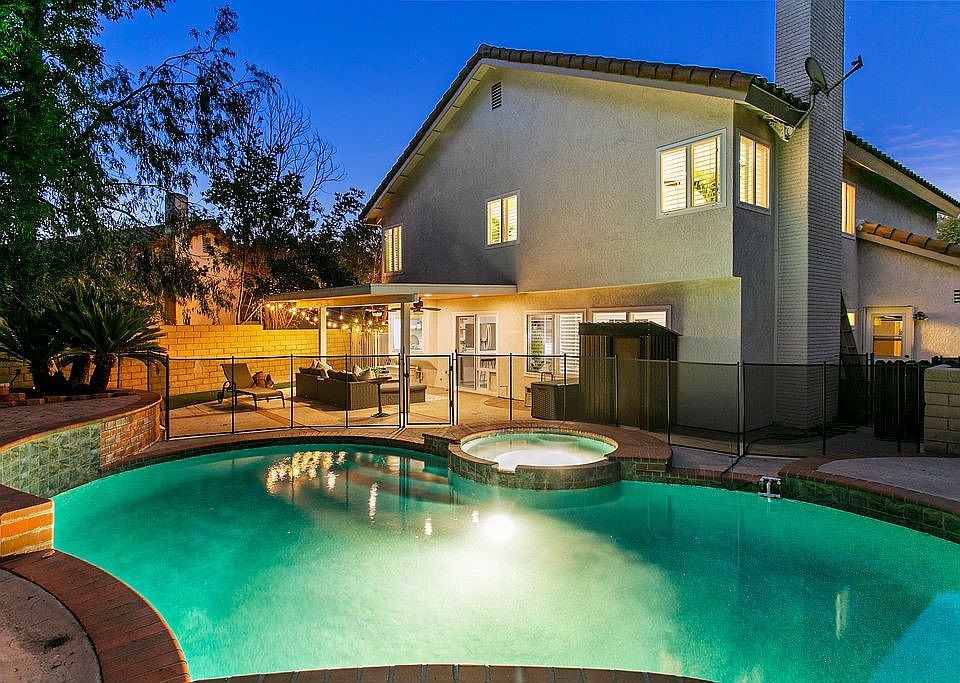 Custom fireplaceNewly landscaped backyardCustom newly redone poolLarge walk-in closetQuartz countertopsNewer stainless-steel appliancesCustom backsplash