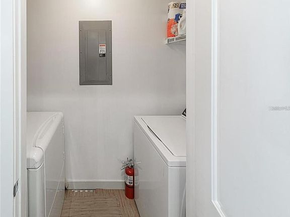 Located in the heart of fabulous downtown Orlando in the Entertainment District. The high, un-painted concrete ceilings and the expansive hurricane-impact floor to ceiling windows are a few of the amazing architectural features this condo has. The floor to ceiling windows and doors has an incredible East view of the City, the Airport, the Rocket Launches at Kennedy Space Center, the City Fireworks, and a section of Lake Eola and the landmark Ampitheatre. All furniture is included with this condo, except, the computer, the computer chair, the bike, and some personal items of the Sellers. Upon entering, you'll notice the beautifully renovated kitchen with granite counter-tops, an island, soft close cabinets, extra-large stainless sink, stainless-steel appliances, and an induction range. Inside laundry room is located at the end of the kitchen with full size washer and dryer included. There is bamboo engineered flooring throughout the living area. Both bedrooms and living area have floor to ceiling windows. Equipped with automatic blinds in the living room. Both bathrooms have granite countertops. 2 assigned parking spaces in the secured garage. AC and Water Heater 2007. The building provides 24-hour concierge, 24-hour security, biometric finger printing for owners for entry into building and elevators, and fobs that are floor specific. All of this makes The Solaire one of the most secure high-rise condo buildings downtown. The Solaire amenities include a pool, fitness center, grills, and a business center, community room, all on the 10th floor. Basic cable and internet is included in the HOA. The Solaire is in the heart of downtown at The Plaza that has a movie theatre, restaurants, night life, and adjacent to Church Street entertainment, Dr. Phillips Performing Arts, Kia Center, Inter & Co Stadium, Camping World Stadium. You have a short walk to the local Public Library, Lake Eola, Publix, and the Farmers Market.