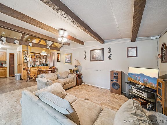 Welcome to this country home sitting on just over just over 2 acres! This 2 bed 2 bath manufactured home sits on a spacious 2 acre lot with lots of mature trees giving a quiet and secluded feel. Inside the home, you'll find a good size living area that opens to the dining area and kitchen. In the kitchen, all appliances will stay including the washer/dryer set. The master bedroom features it's own bathroom with a double sink vanity. At the back of the home, you'll find a great size flex room that could double as a second living space or a hobby room. Outdoors, there is a shop that is great for extra storage/space. This home is located close to Lake Hudson and is just mintues to town for all basic necessities. Let's go take a look!