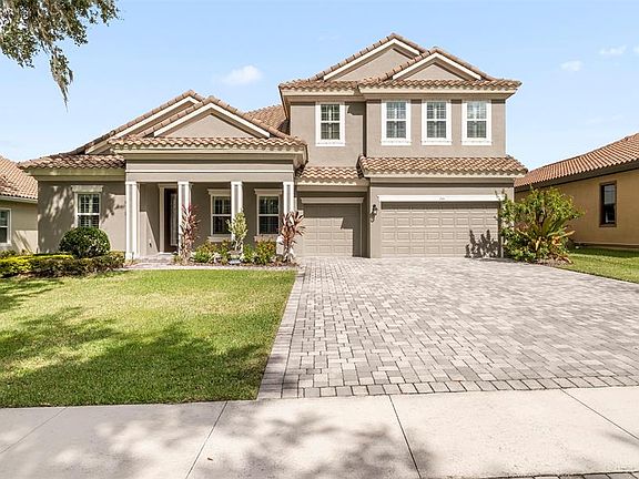 Exquisite, nearly new home in the gated Sanctuary at John Moore prime Brandon location close to I-75. Quality Homes by WestBay features 5 bedrooms, 4 baths, office + bonus room, tile roof & luxury finishes throughout. Luxury vinyl plank and tile flows throughout the home. The gourmet kitchen boasts soft-close cabinetry, large island w/ seating + storage, 5-burner gas cooktop w/ hood, wall oven, microwave, and farm sink. Great room includes wood-beam accents leading to a covered peaceful outdoor lanai. Private owner’s suite offers coffered spa bath w/ freestanding tub, walk-in shower & dual vanities. 2 bedrooms share a bath off kitchen near great room for guest privacy. Bonus room & 5th bedroom located upstairs w/ full bath. Truly move-in ready luxury living!