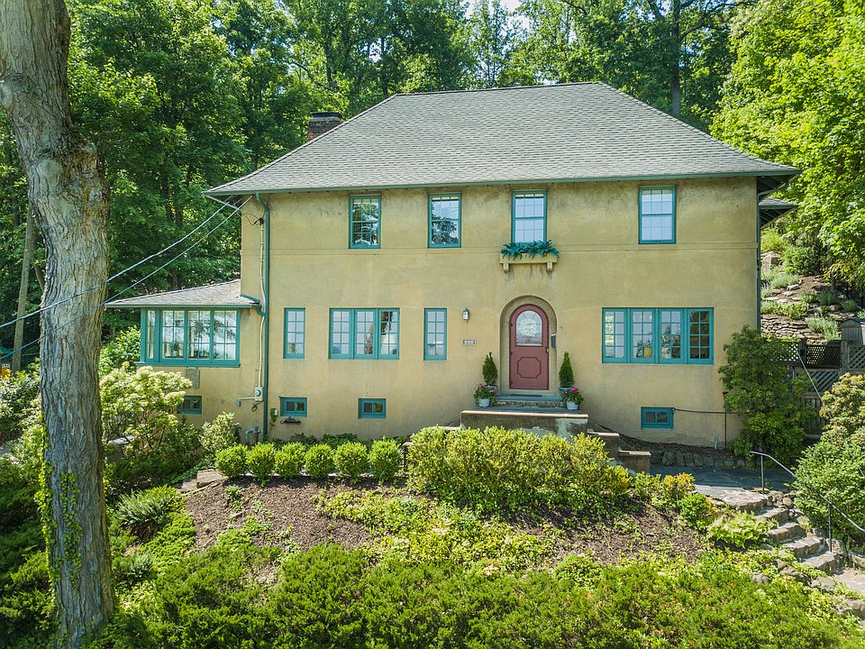 Nestled among towering trees in the reservation, you will find this gem tucked away on a hill, surrounded by lush, park-like grounds. Welcome guests into the bright formal living room. The sun-drenched family room offers views of the NYC skyline. Host your next gathering in the formal dining room. The EIK is a chef's delight w/ pro-grade stainless appliances, while a large window overlooks the stone-tiered backyard. Upstairs you'll find the sumptuous master suite with a marble spa-bath & soaking tub. Two additional bedrooms, a hall BA & laundry room complete the 2nd level. The 3rd floor is home to an additional bedroom. The finished LL has a RR, full BA & exercise area. The backyard is an oasis for relaxation and entertainment with show-stopping in-ground pool, hot tub, and sprawling patio.